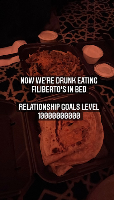 Ty and I opened up our quesadilla and animal fries in bed as we reminisced over the past 8 months and talking about the future. We promised to remember this night and to have many more. Ty pulled out a Steven King book (Desperation) and read me the first chapter. Knowing that we probably wouldn’t make it through the second chapter tonight, Ty closed the book and kissed me good night. I thanked him again and again for showing me every day how much he loves and appreciates me.