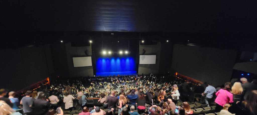 The line to enter wrapped around three city blocks but moved quickly as they checked everyone’s Covid vaccination cards and digital tickets. Luckly, as we learned in Hawaii in December, taking a picture of your card next to your ID saved a lot of time and disappointment if you didn’t carry it with you 24/7. We ordered our drinks, a Mai Thai and a Truely for each of us (not realizing how big those Truelys actually were), and made our way to our seats. We sat down just in time for the opening act: Laura something… I wish I had remembered her name because she was really funny.